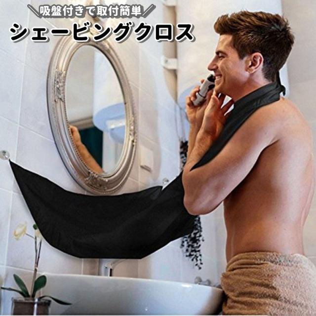 シェービングクロス メンズ 髭剃り 前髪カット 吸盤付き 袖なし エプロン 飛び散り防止 セルフカット 自宅カット ケープ ひげ