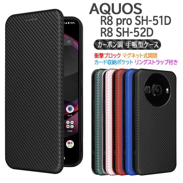AQUOS R8 pro SH-51D / R8 SH-52D スマホケース 手帳型 カーボンデザイン マグネット式 カード収納