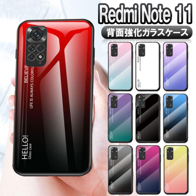 Redmi Note 11 レッドミーノート 11 ケース カバー ガラスケース 背面ガラス TPUケース グラデーション 耐衝撃 強化ガラス 背面保護 かっこいい おしゃれ