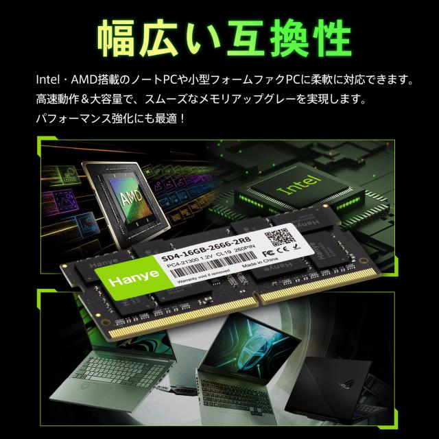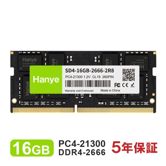ノートPC用メモリ PC4-21300(DDR4-2666) 16GB SODIMM Hanye 1.2V CL19 260pin SD4-16GB-2666-2R8 国内正規代理店品 5年保証 ネコポス送料無料 ポイント消化