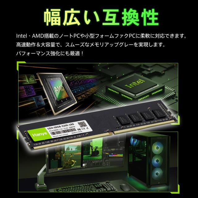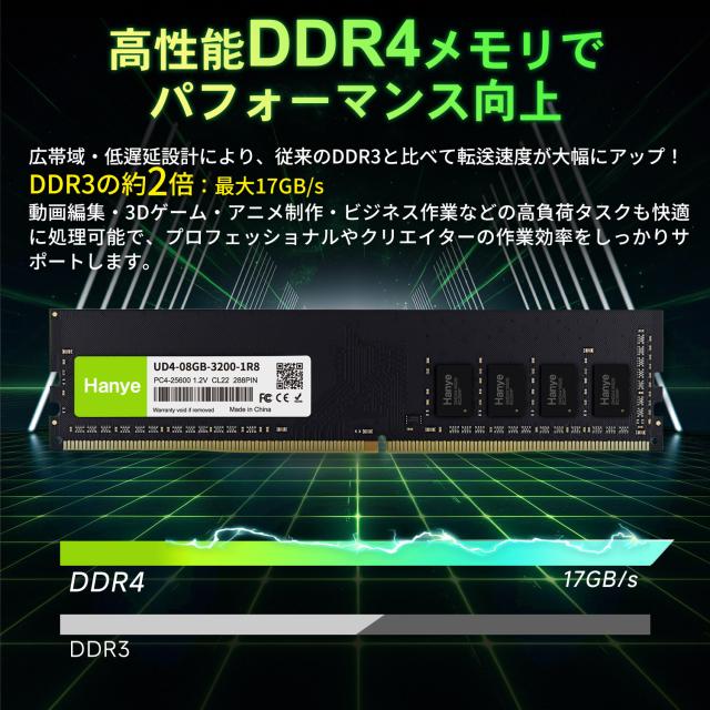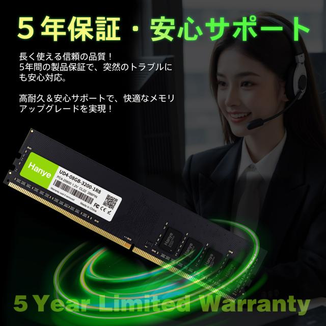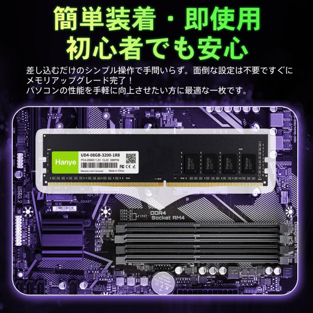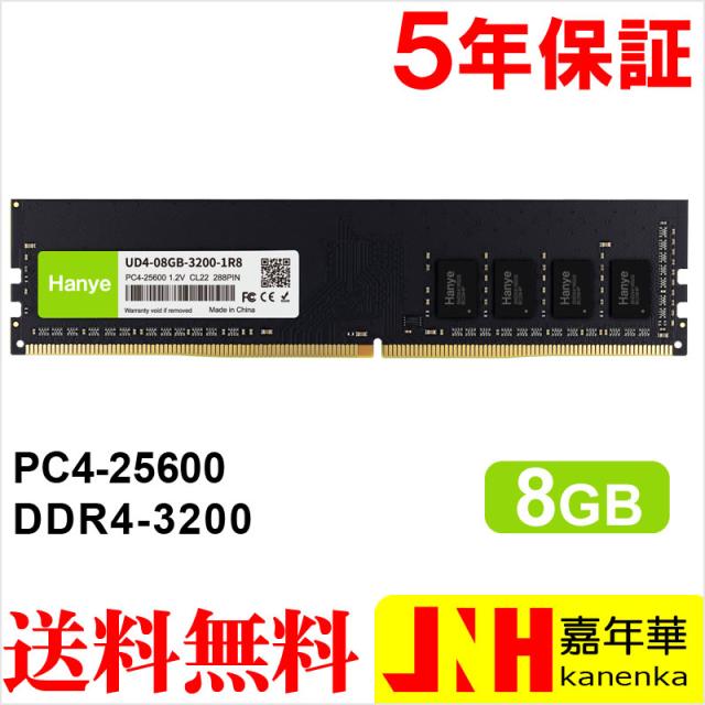 デスクトップPC用メモリ PC4-25600(DDR4-3200) 8GB DIMM Hanye 1.2V CL22 288pin UD4-08GB-3200-1R8 国内正規代理店品 5年保証ネコポス送料無料 ポイント消化