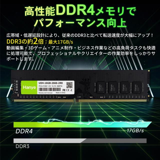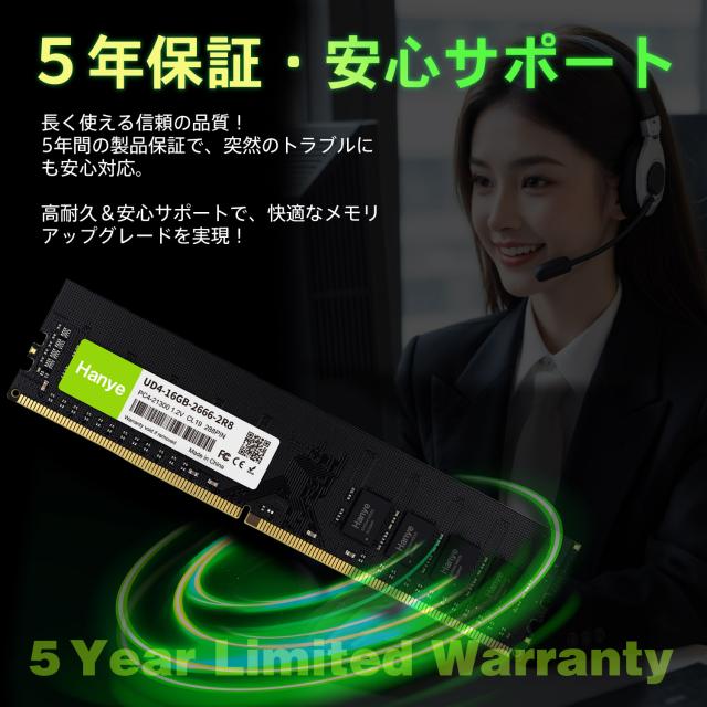 デスクトップPC用メモリ PC4-21300(DDR4-2666) 16GB DIMM Hanye 1.2V CL19 288pin UD4-16GB-2666-2R8 国内正規代理店品 5年保証ネコポス送料無料 ポイント消化