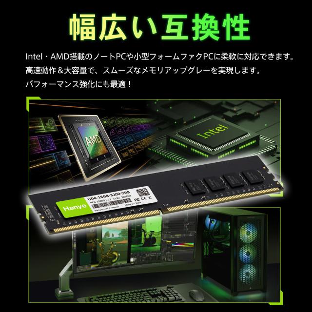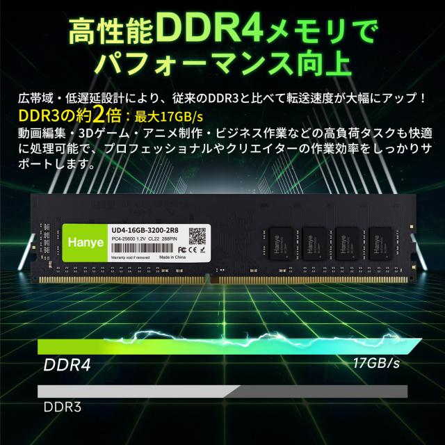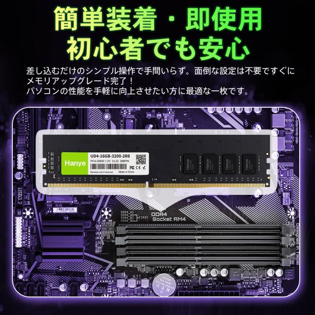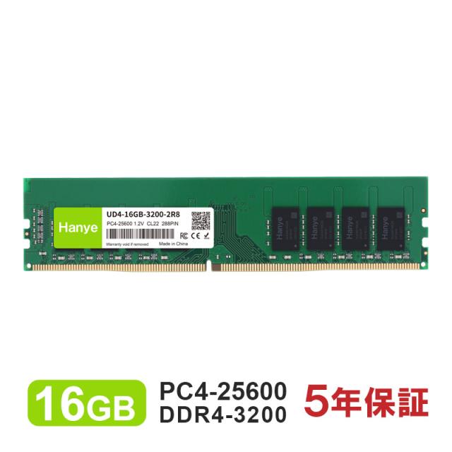 デスクトップPC用メモリ PC4-25600(DDR4-3200) 16GB DIMM Hanye 1.2V CL22 288pin UD4-16GB-3200-2R8 国内正規代理店品 5年保証ネコポス送料無料 ポイント消化