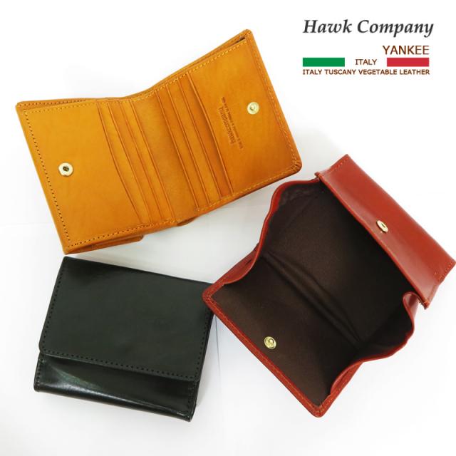 ホークカンパニー HAWK COMPANY イタリアンレザー コンパクトウォレット 2つ折り財布 YANKEE社 革 メンズ レディース 7250