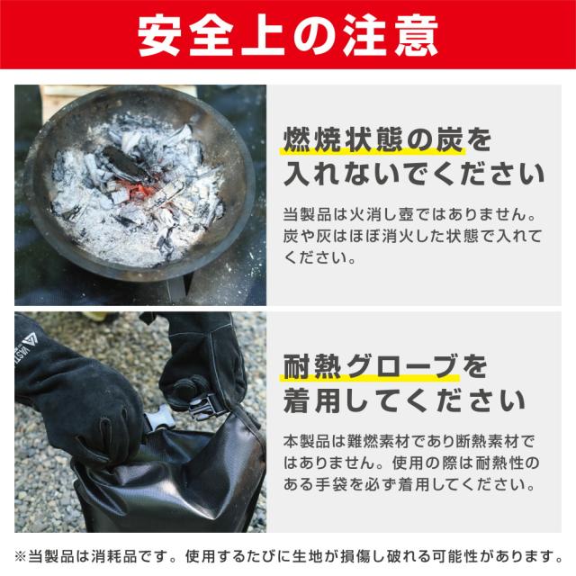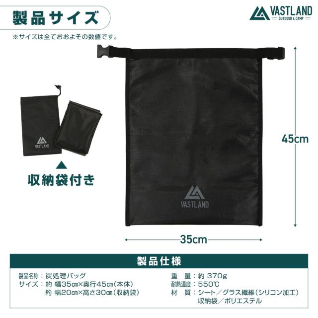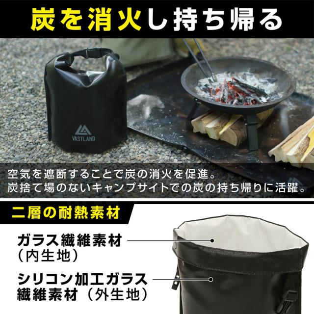 VASTLAND 炭処理バッグ 炭入れ 容量8L 耐熱素材 自立可能 開口部マグネット 収納袋付き