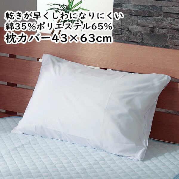 枕カバー ピロケース 43×63cm ポリエステル65% 綿35% 乾きが早くしわになりにくい 日本製 無地 ホワイト ファスナー式 ピローケース まくらカバー マクラカバー ポイント消化