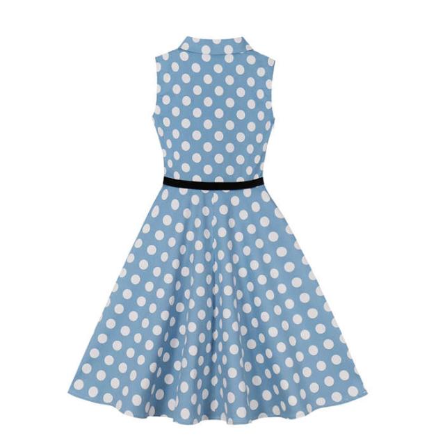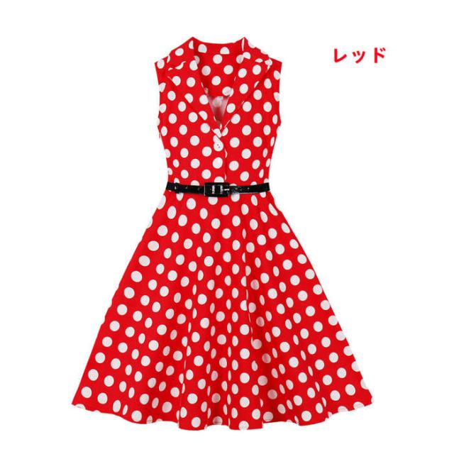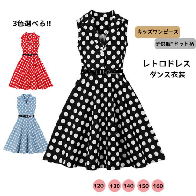 子供ワンピース 女の子 キッズワンピース ノースリーブ レトロドレス Aライン ドット柄 子供服 ダンス衣装 フレアワンピース ベルト付き