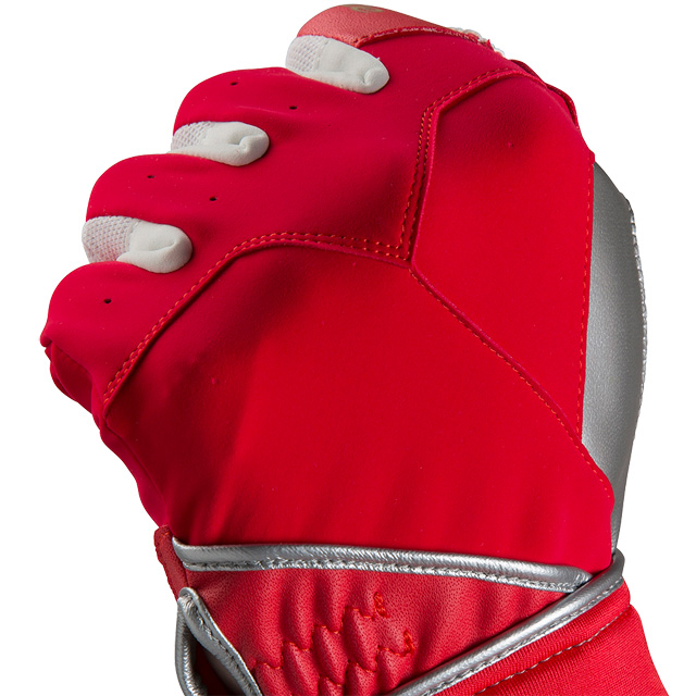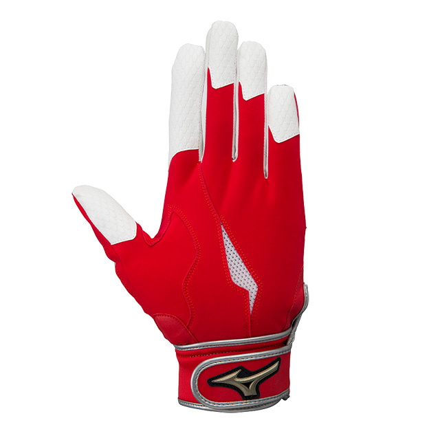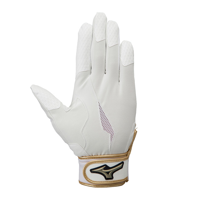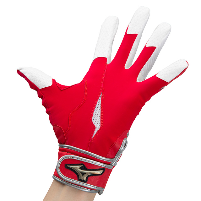 ■ゼロスペ合皮手と手袋の一体感を可能な限り高める為、求める方向へ優れた伸縮性を持つマルチストレッチ合成皮革『ゼロスペ合皮』を採用。スエード調に仕上げ、手袋全体に使用することでミズノ史上最高のフィット感を実現しました。