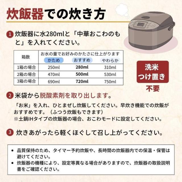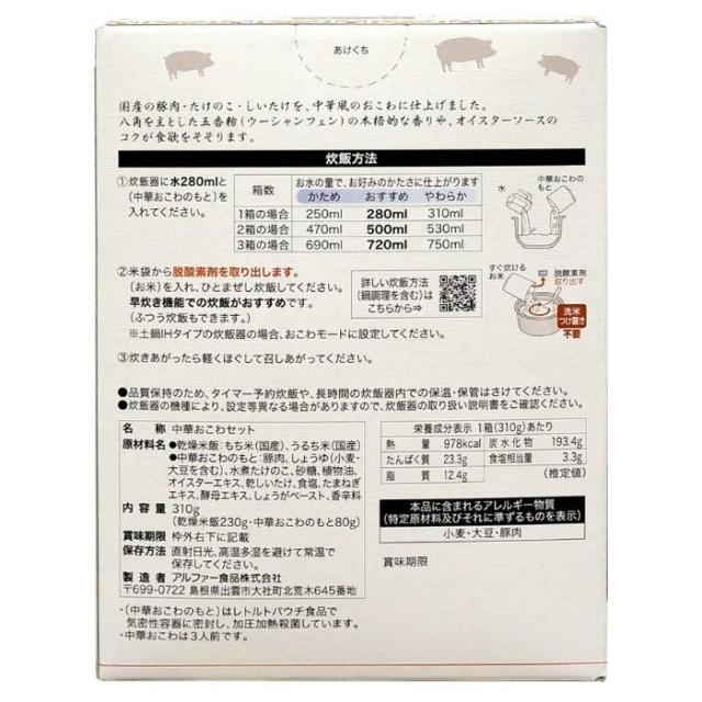 | セット内容 | 乾燥米飯230g、中華おこわのもと80g ※1箱あたり |