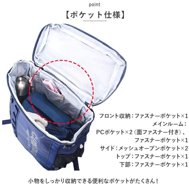 | 商品説明 | ・通学通勤にぴったり!PC、タブレットの収納ポケット有り!機能性バツグンの「CAPTAINSTAG リュック21L」が登場。 【大容量サイズ】 ・必要な書類や荷物がザクザク入る大容量サイズ。充実した収納スペースで、荷物の整理整頓ができる機能性リュック。 【PCタブレット同時収納OK】 ・メインルーム内の背面には、PCとタブレットを同時に収納できる、専用ポケット有り!クッション性のあるポケットで安全に収納◎ 【独立ポケット多数】 ・メインルームの上下にポケット有り!メインルームを開けずに出し入れでき、独立しているので濡れた物や汚れた物を分けて収納できる。 ・お弁当やペットボトル、タオルなどの収納にぴったり。 【持ちやすい】 ・リュックのベルトは長さ調節OK&クッション性があるので、重い荷物を入れても持ちやすい。ウエストベルト付きで肩ベルトのズレを防ぐ。 【カラビナループ】 ・フロント部分にはカラビナなどキーホルダーを通せるループベルト付き。デザイン性もUP! 【両サイドポケット】 ・両サイドには折りたたみ傘やペットボトルを入れることができる、ポケットを搭載。 【消臭ネーム】 ・優れた消臭機能を持つ織ネームを縫い付けしているので、衣類などの気になるニオイも解決! 【ポケット仕様】 ・小物をしっかり収納できる便利なポケットがたくさん! ・フロント収納:ファスナーポケット×1 ・メインルーム:PCポケット×2(面ファスナー付き)、ファスナーポケット×1 ・サイド:メッシュオープンポケット×2 ・トップ:ファスナーポケット×1 ・下部:ファスナーポケット×1 |