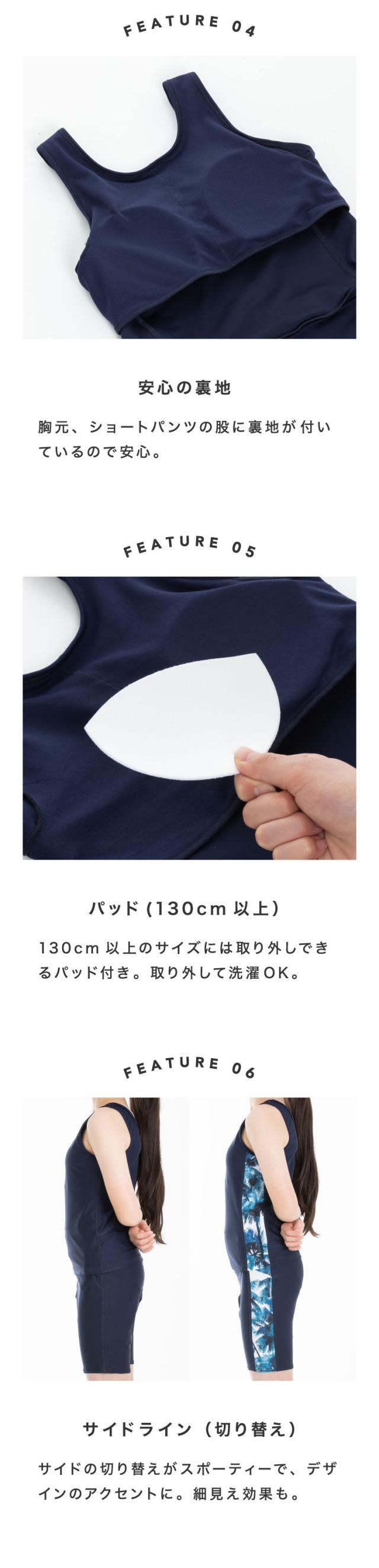 ※130〜XXLは取り外し可能なパッド付き