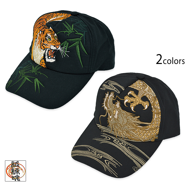 和柄ツイルCAP 絡繰魂 233859 和柄 和風 帽子 刺繍 虎 竜 龍