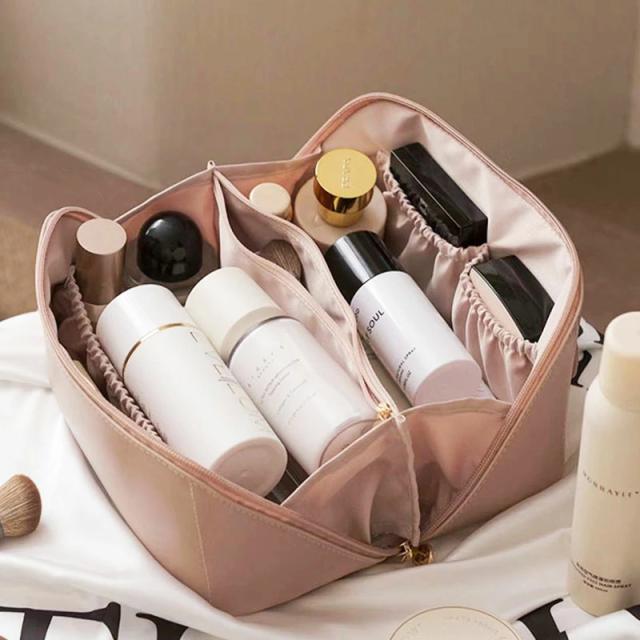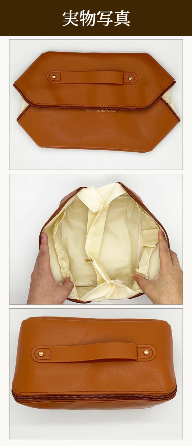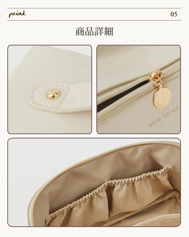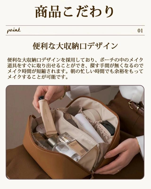 便利な大収納口デザインを採用しており、ポーチの中のメイク道具をすぐに取り出せことができ、 探す手間が無くなるのでメイク時間が短縮されます。朝の忙しい時間でも余裕をもってメイクすることが可 能です。