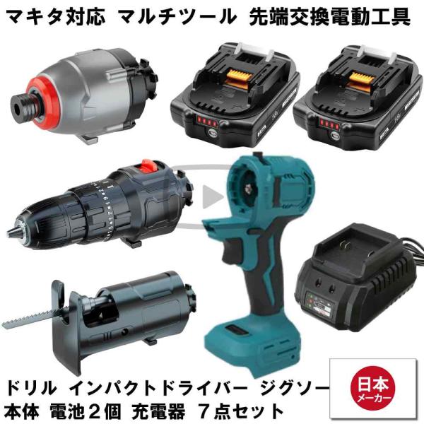 マルチツール セット 18V EVO マキタ 対応 ドリル インパクト ジグソー 電池x2 充電器 先端ツール交換可能電動工具 Heimerdinger製 マルチヘッドツール 送料無料