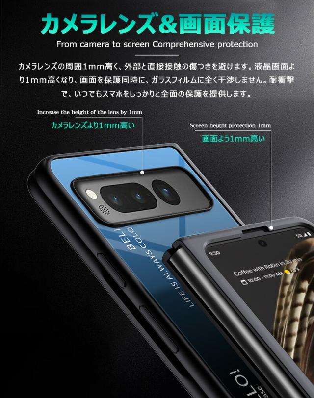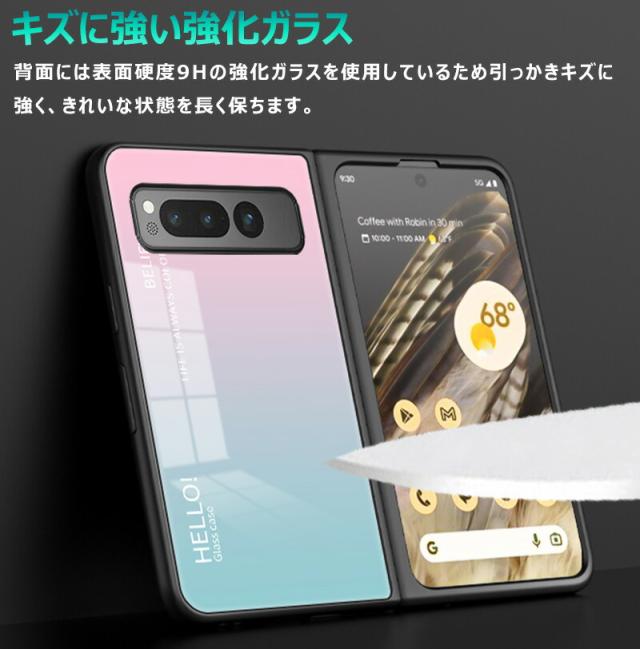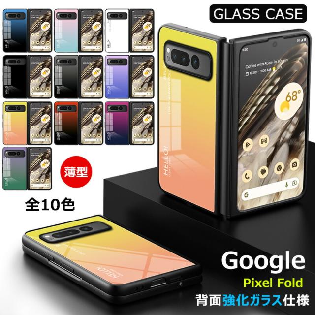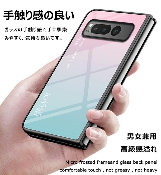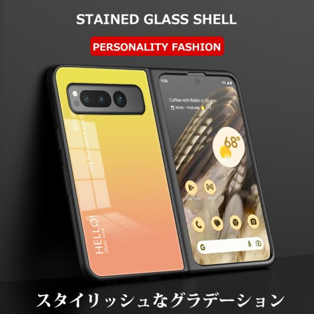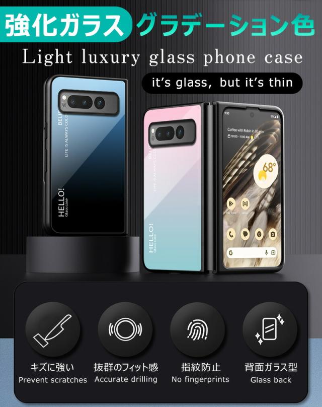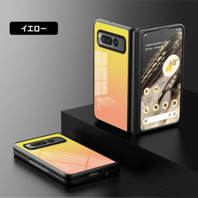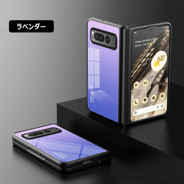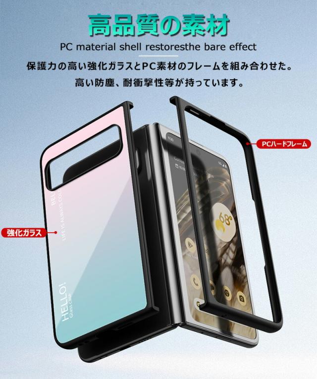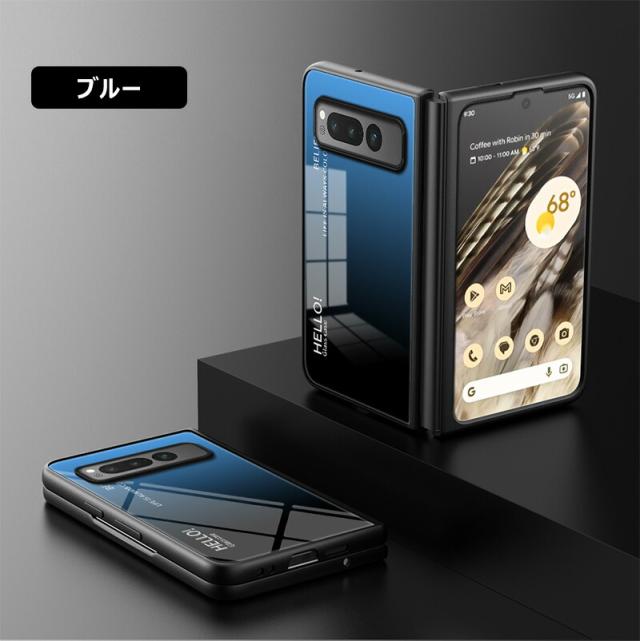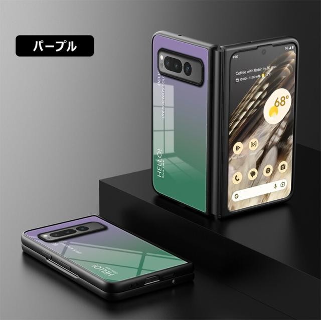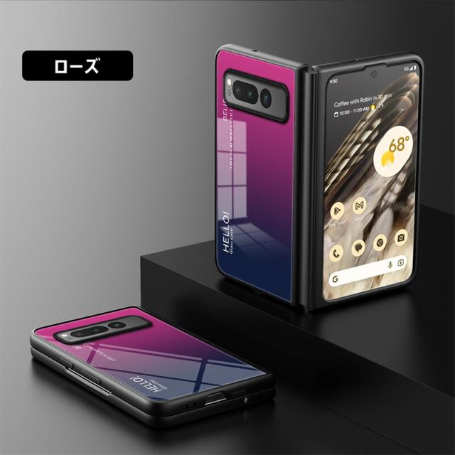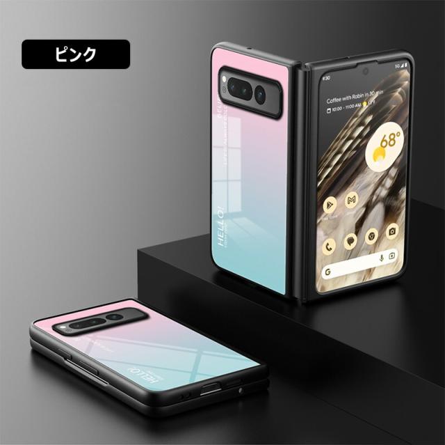 Google Pixel Fold 用ケース 強化ガラス グラデーション色 9H硬度加工 光沢デザイン 可愛い 耐衝撃 シンプル グーグルピクセル フォールド かわいい 画面保護 スマホカバー おしゃれ Google pixel fold ガラスケース きれい 指紋防止 傷つけ防止 PCハード バンパー 衝撃吸収