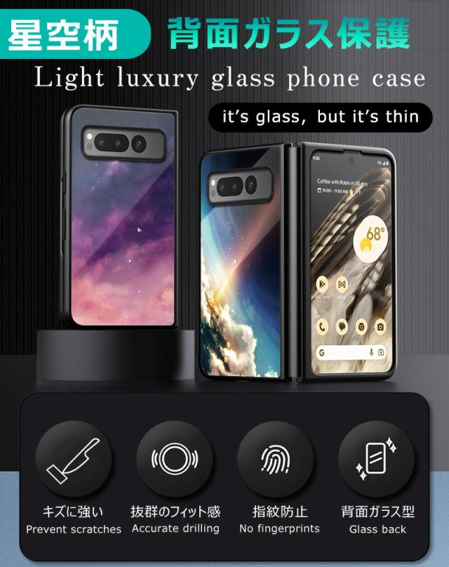 google pixel fold 強化ガラスケース 光沢感 頑丈 可愛い 耐衝撃 シンプル グーグルピクセル フォールド スマホケース おしゃれ Google pixel fold ガラスケース きれい 指紋防止 傷つけ防止 PCハードフレーム 画面保護 薄型 かわいい 星空 星 宇宙かっこいい ins風 星空柄