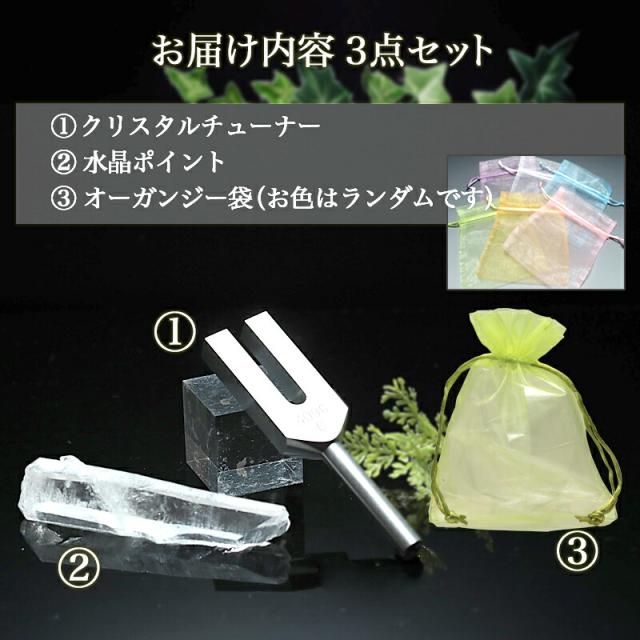 送料無料 メール便対応のコンパクトタイプ ブラジル産 水晶ポイント付 クリスタルチューナー 音叉浄化セット オーガンジー袋入り 調和の力を増幅させる天然水晶 大人気のナチュラル水晶ポイント ブラジル産 inmy パワーストーン 天然石