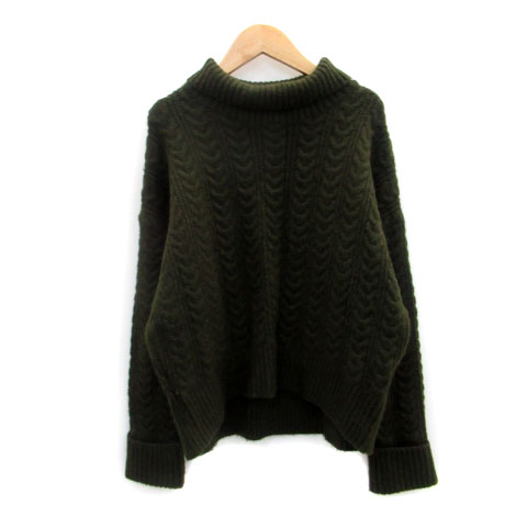 【中古】KBF アーバンリサーチ ニット セーター 長袖 オフタートルネック ロールアップ 総柄 ONE カーキ レディース