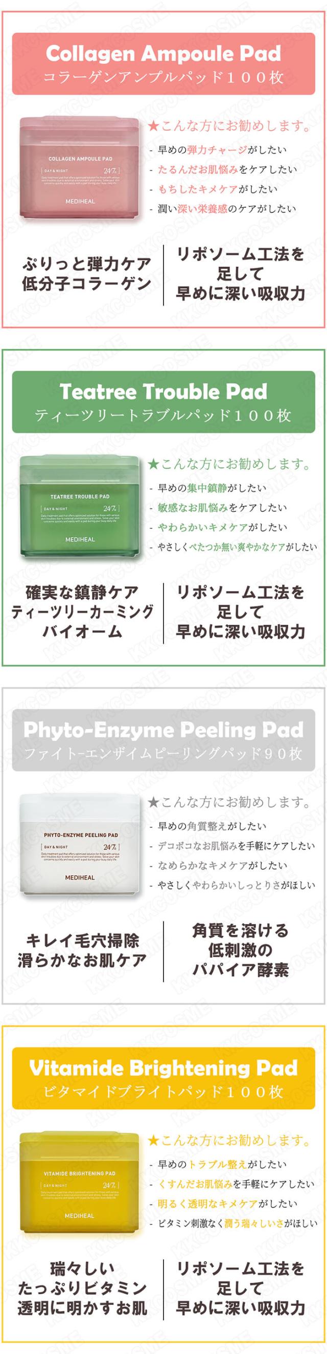mediheal メディヒール トナーパッド 各100枚 ピーリングパッド 90枚 6種 単品 スキンケアパッド 韓国コスメ 正規品