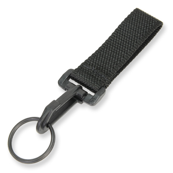 アメリカのポリスグッズ、ホルスターメーカーのビアンキのキーホルダーです。ループ部分にベルトに通し、鍵はキーリングに取り付けておき必要なときにフックから外して使用します。取り付け可能なベルトの幅は約50mmです。