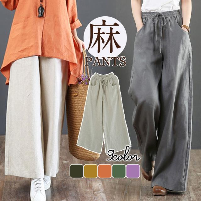 クロップドパンツ テーパード レディース ワイドパンツ ロング 体型カバー 夏 着痩せ リネン風 普段着 薄手 カジュアル 部屋着