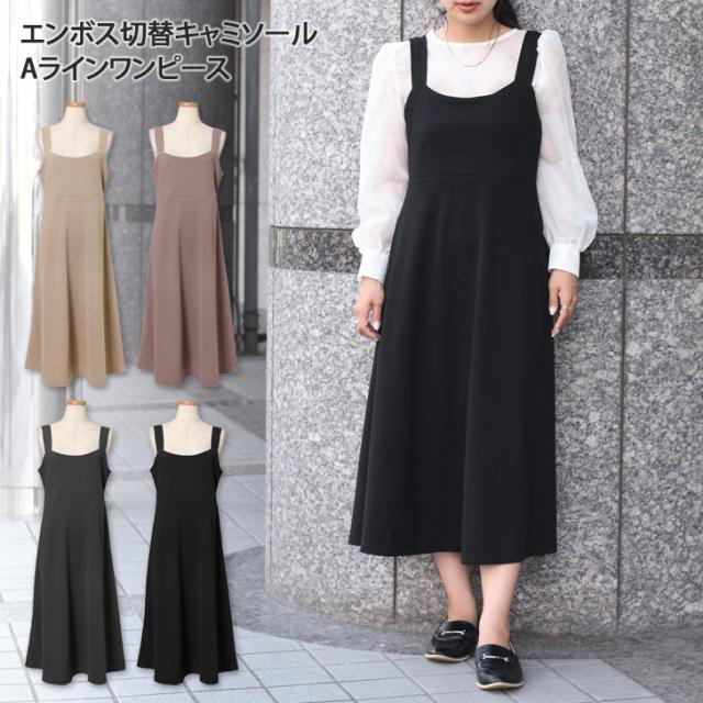 新作 エンボス切替キャミソールAラインワンピース レディース 夏 ロング おしゃれ 可愛い きれいめ 速乾 イージーケア キャミワンピ ジャンスカ 体型カバー ゆったり マタニティ 妊婦 ぽっちゃり 高身長 無地