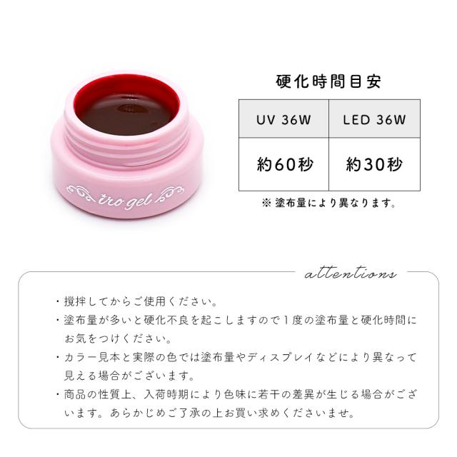 *カラージェルは商品の性質上、開けた時色素が沈殿している為、よく混ぜてからご使用ください。