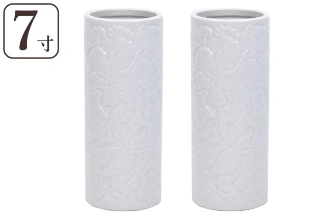 花立 墓 お墓 花立て 仏具 陶器 花瓶 2本組 セット 白磁 唐草 投入 7寸 サイズ 約(cm) 高さ21 (代引き決済不可商品)