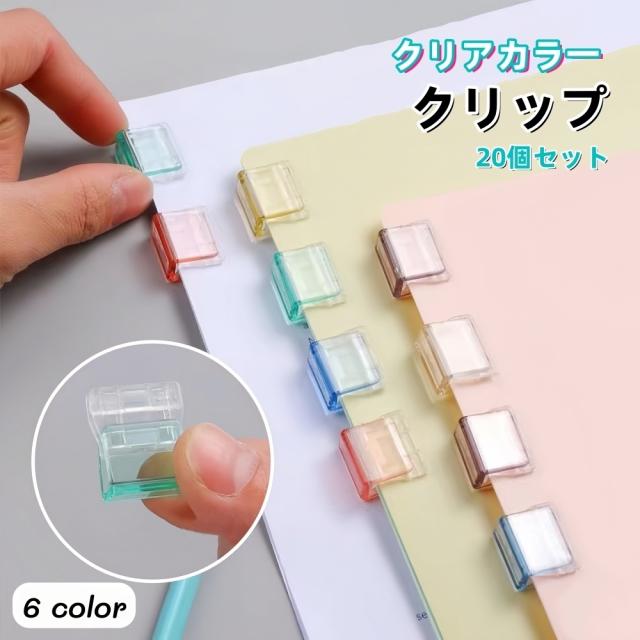 クリップ 20個セット 文房具 クリアカラー 書類クリップ メモクリップ プリント 書類整理 オフィス 事務用品 見出し かわい