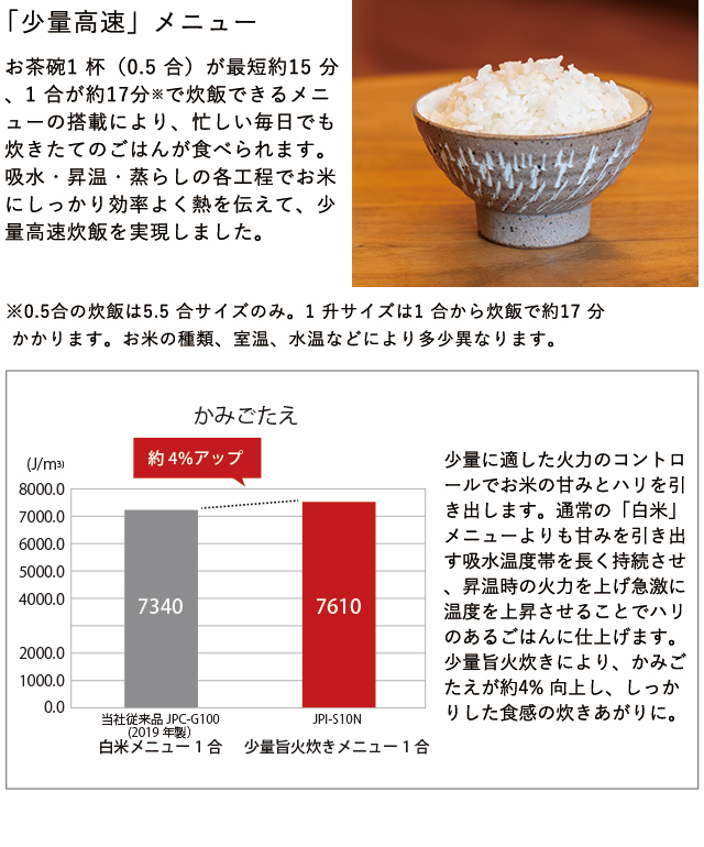 2)少量でもおいしく炊ける