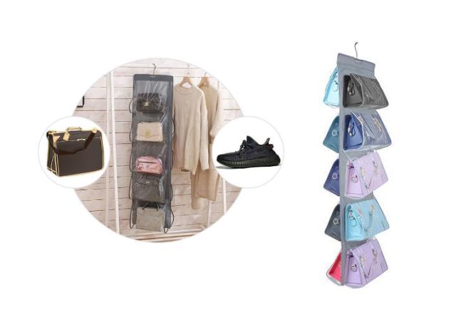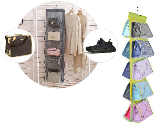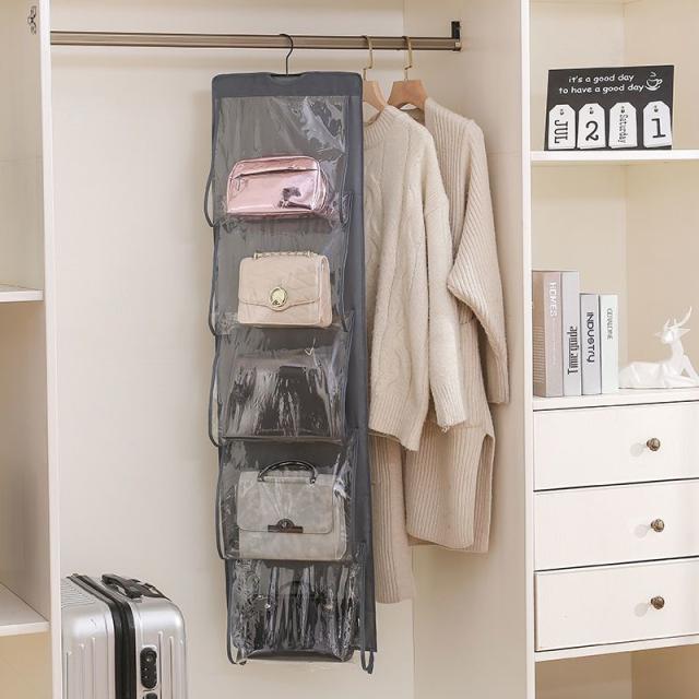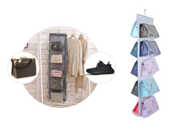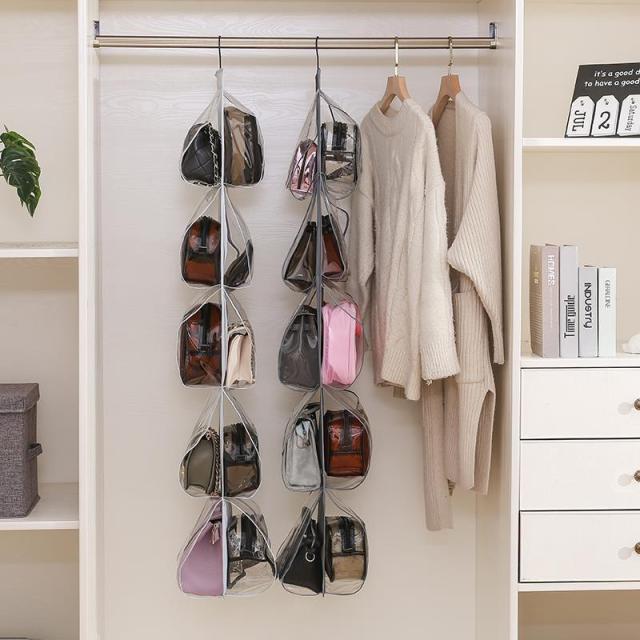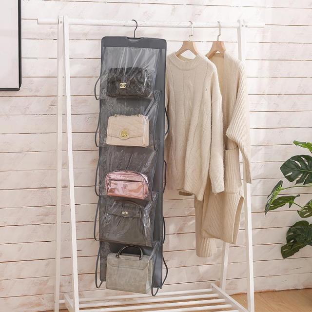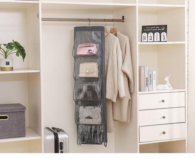 バッグ収納 吊り下げ収納 カバン かばん クローゼット 収納 ハンガー 吊り下げ式 折りたたみ カバン収納ラック 壁掛け 5段 中身可視 便利収納