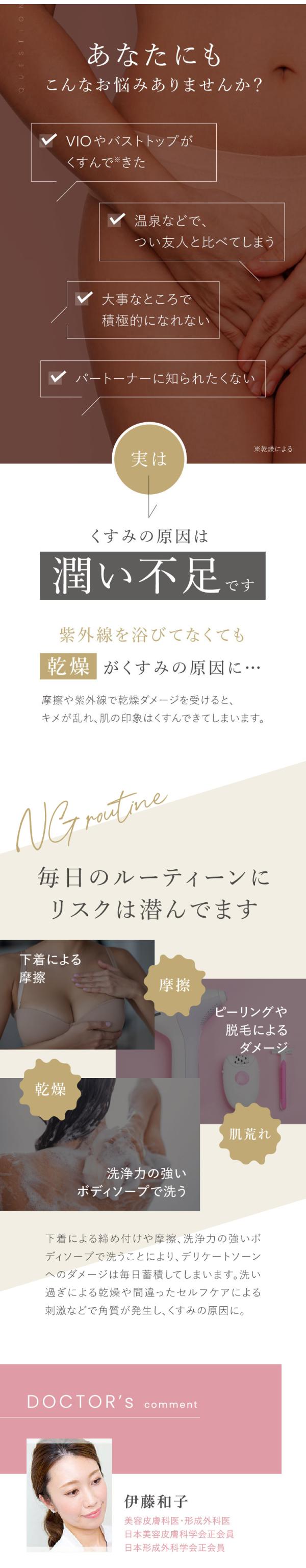 デリケートゾーン用薬用美白※クリーム。全身の乾燥によるくすみに。