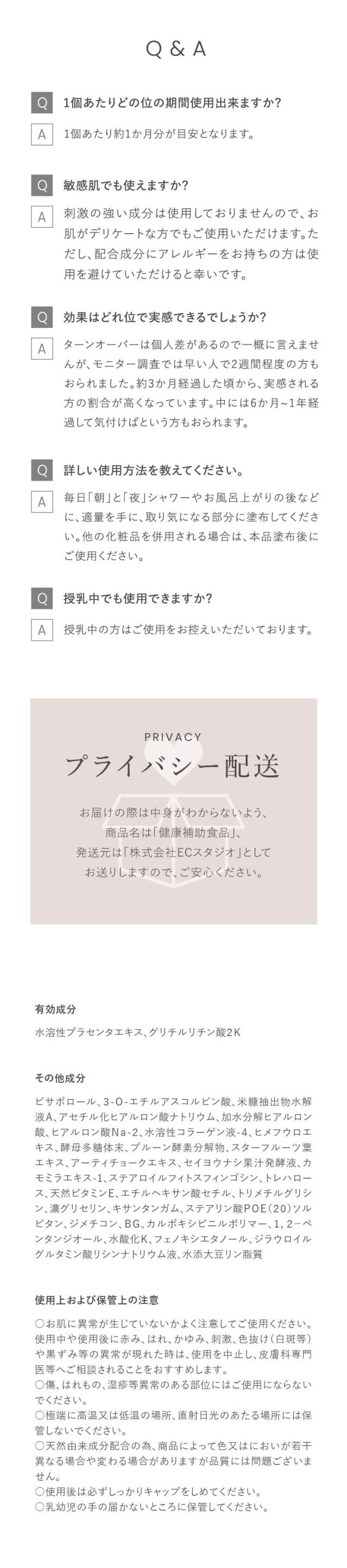 | 有効成分 | 水溶性プラセンタエキス、グリチルリチン酸2K |