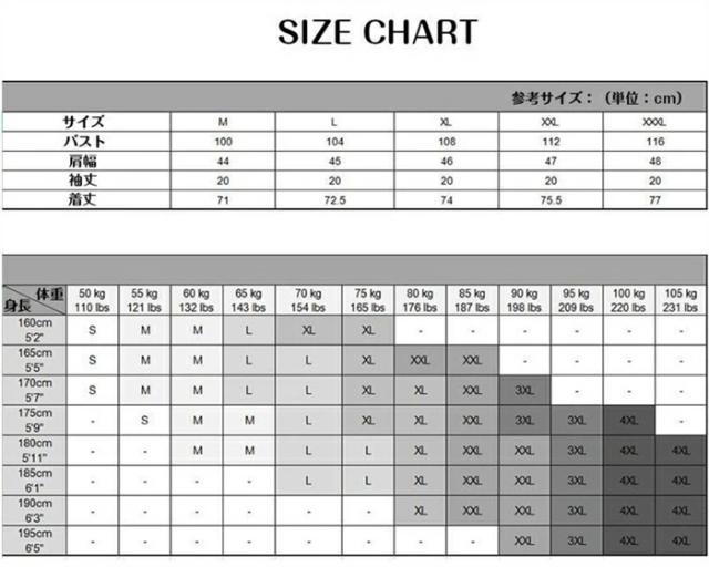 ▼サイズ:M(日本XS相当),L(日本S相当),XL(日本M相当),2XL(日本L相当),3XL(日本XL相当)(単位:CM)
