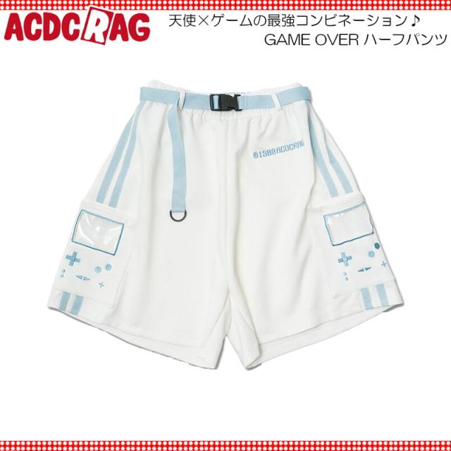 ACDC RAG エーシーディーシーラグ GAME OVER ハーフパンツ ボトムス ハーフ丈 5分丈 原宿 原宿系 ファッション 天使界隈 天使 水色界隈 ゲームオーバー ホワイト
