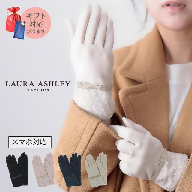 手袋 レディース ブランド 暖かい スマホ 対応 防寒 かわいい おしゃれ プレゼント ギフト 秋冬 LAURA ASHLEY ローラアシュレイ 五本指 リボン エレガント