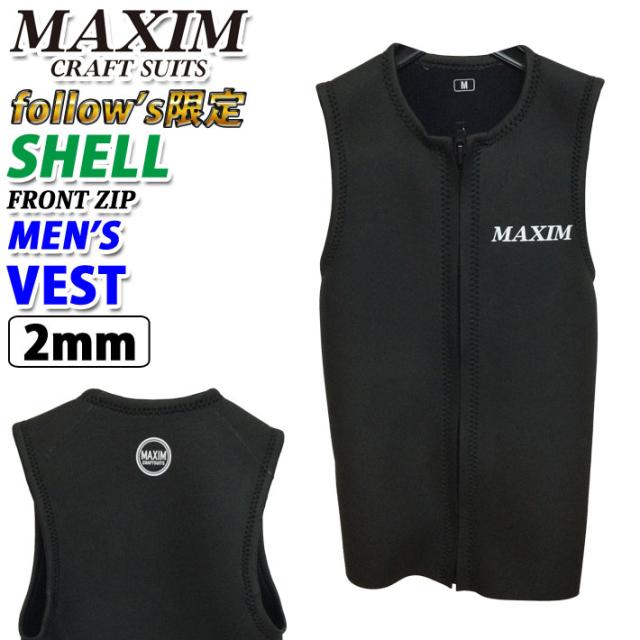 follows限定 2025 MAXIM マキシム ウェットスーツ [SHELLモデル] ベスト FRONT ZIP フロントジップ メンズ ウエットスーツ 2mm BLKスキン 国内生産日本正規品 送料無料