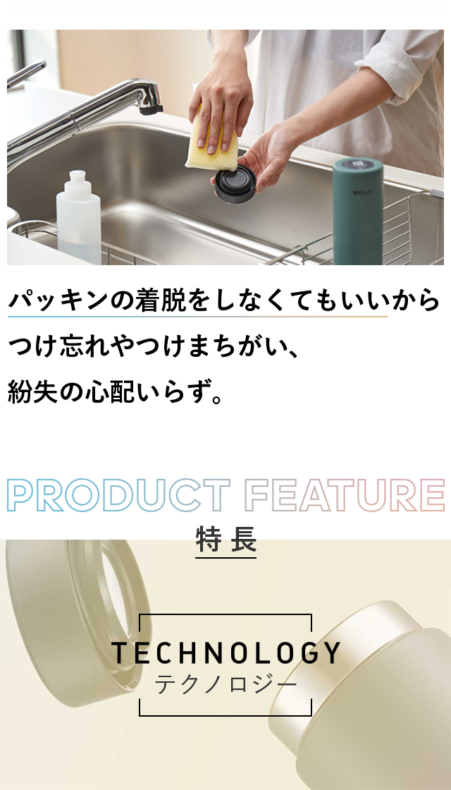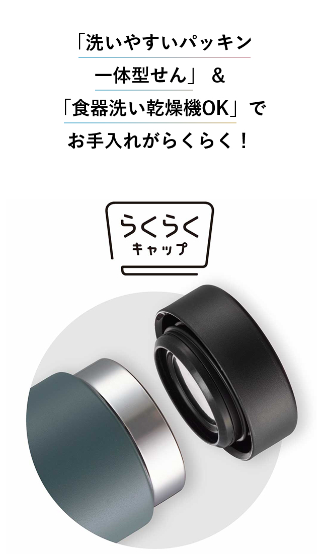 - パッキン一体で食洗機可って最高です。スーパークリーン加工などタイガーさんの水筒はお気に入りでずっと愛用しています。