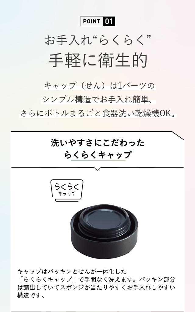 お手入れ簡単で毎日らくに使える