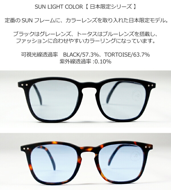 定番のSUNフレームに、カラーレンズを取り入れた日本限定モデル。 ブラックはグレーレンズ、トータスはブルーレンズを搭載し、 ファッションに合わせやすいカラーリングになっています。 | |||||||