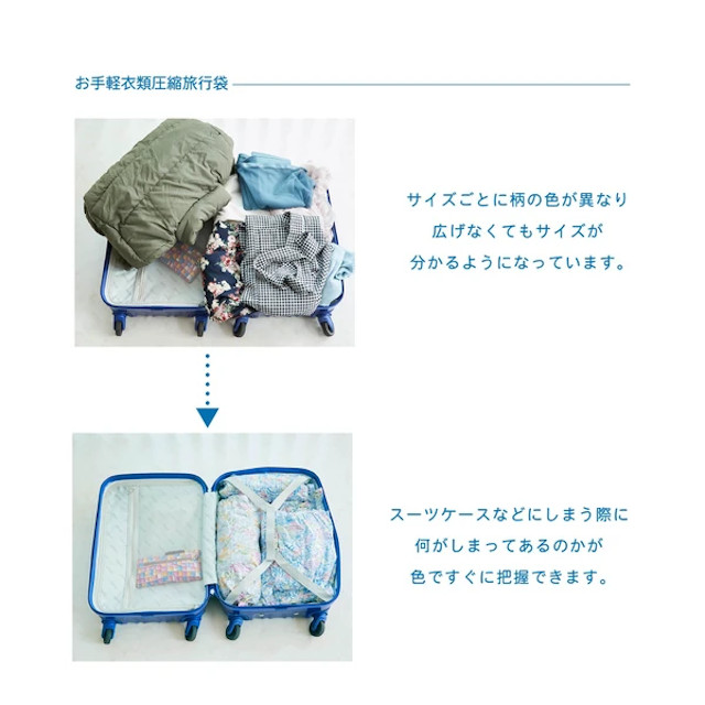 掃除機を使って圧縮するのではなく手で簡単に圧縮できちゃうので旅先などで荷物を小さくしたい時に活躍。