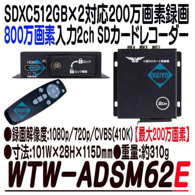 WTW-ADSM62E 【800万画素カメラ対応】カメラ2台用 SDカードレコーダー【防犯カメラ】 【監視カメラ】