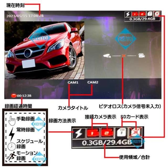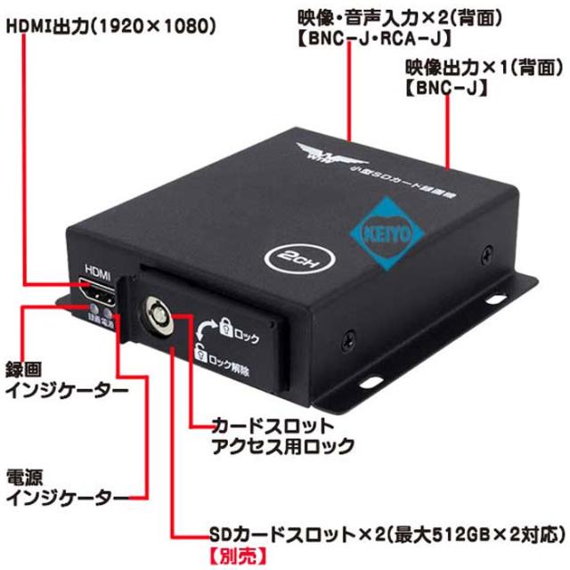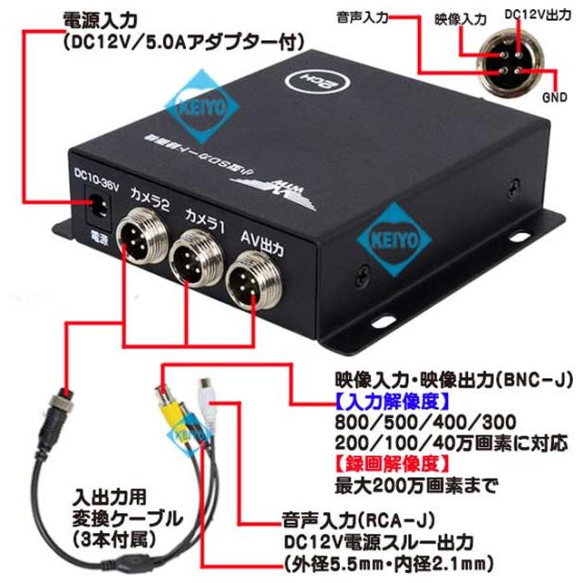 【800万画素カメラ対応】カメラ2台用 SDカードレコーダー