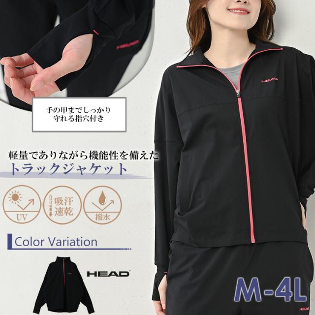 大きいサイズ レディース トラックジャケット 長袖 メール便対応 指穴 撥水加工 UVカット HEAD トップス M/LL/3L/4L ゆったりサイズ ぽっちゃり女子 プラスサイズ