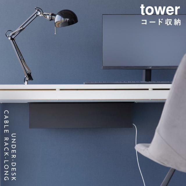 ケーブル 収納 カバー デスク下 ケーブルラック タワー tower 山崎実業 シンプル デスク下天板ケーブルラック タワー ロング
