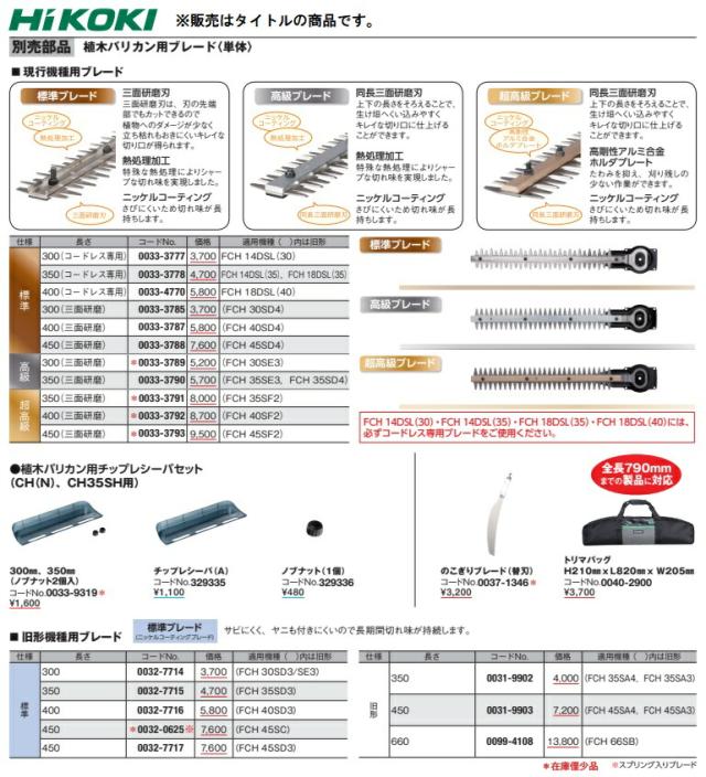 (HiKOKI) 植木バリカン用標準ブレード 0033-3785 長さ300mm 三面研磨刃 適用機種FCH30SD4 00333785 ハイコーキ 日立