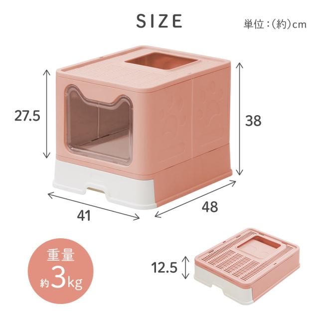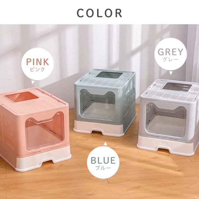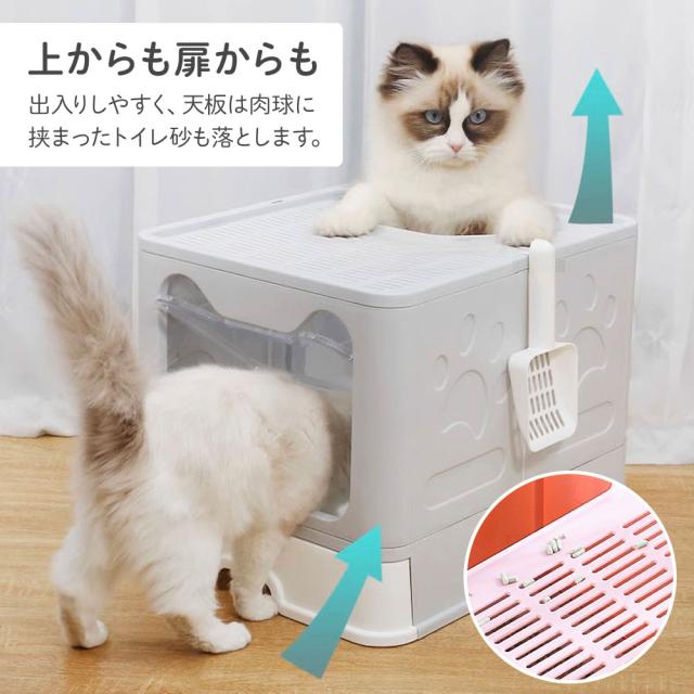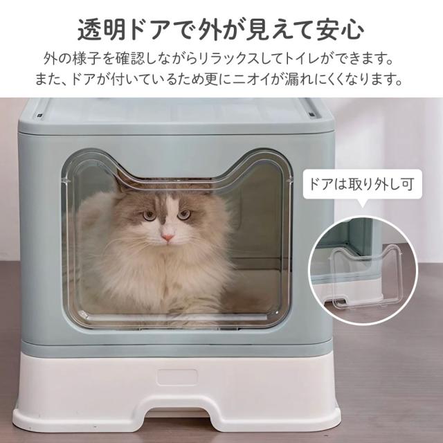 猫トイレ 飛び散らない 大型 大きめ 隠す フルカバー ドア付き 箱型 折りたたみ 本体 上から 猫砂 飛び散り防止 目隠し