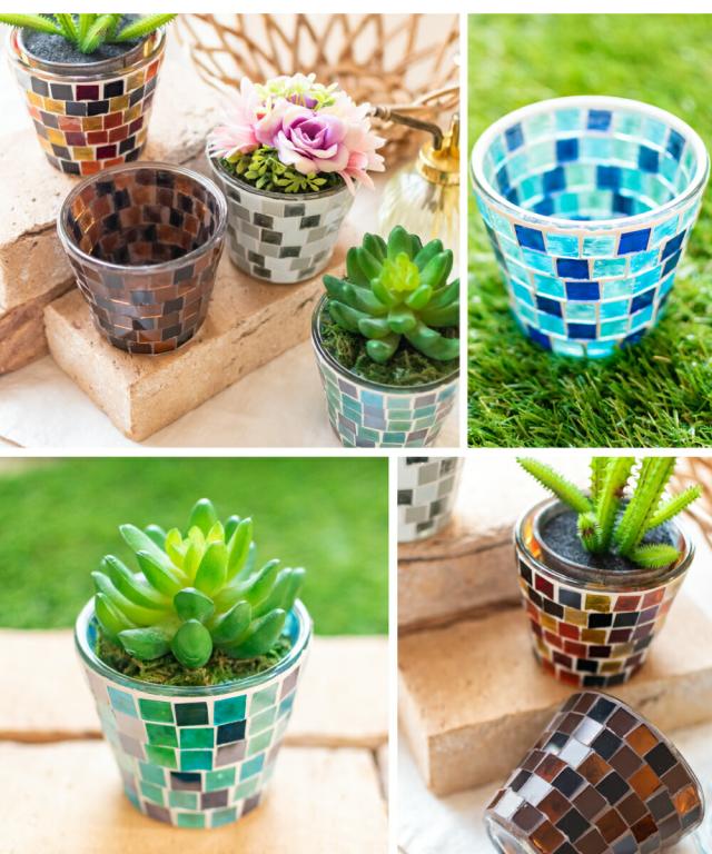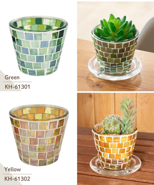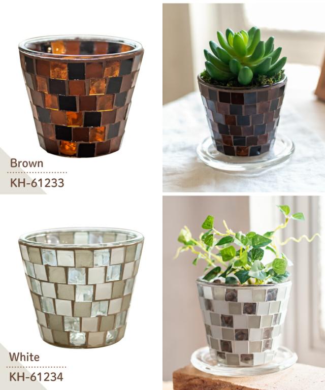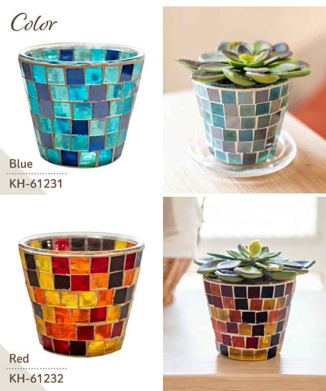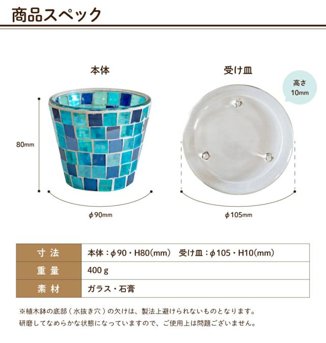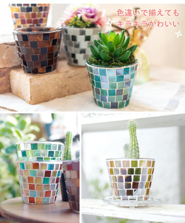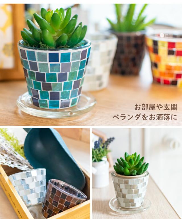植木鉢 おしゃれ 鉢 鉢カバー 3号 9cm 受け皿付き 室内 フラワーポット ガラス モザイク ガーデニング 屋外 植物 多肉植物 底穴あり プランター 円形 丸型 ホワイト ブラウン ブルー レッド イエロー グリーン マルチ カレード プラントポット Sサイズ