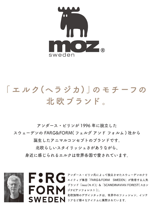 mozとはスウェーデン語でエルク(ヘラジカ)という意味を持ち、基本的にそのままエルク(ヘラジカ)をモチーフにしたアイテムを展開しているスタイリッシュブランドです。
