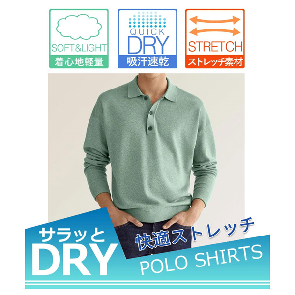 ポイント超超祭 ポロシャツ 長袖 作業服 ストレッチ 吸汗速乾 作業着 紳士服 デオドラント 消臭 オールシーズン ドライ ゴルフ ポリエステル 送料無料